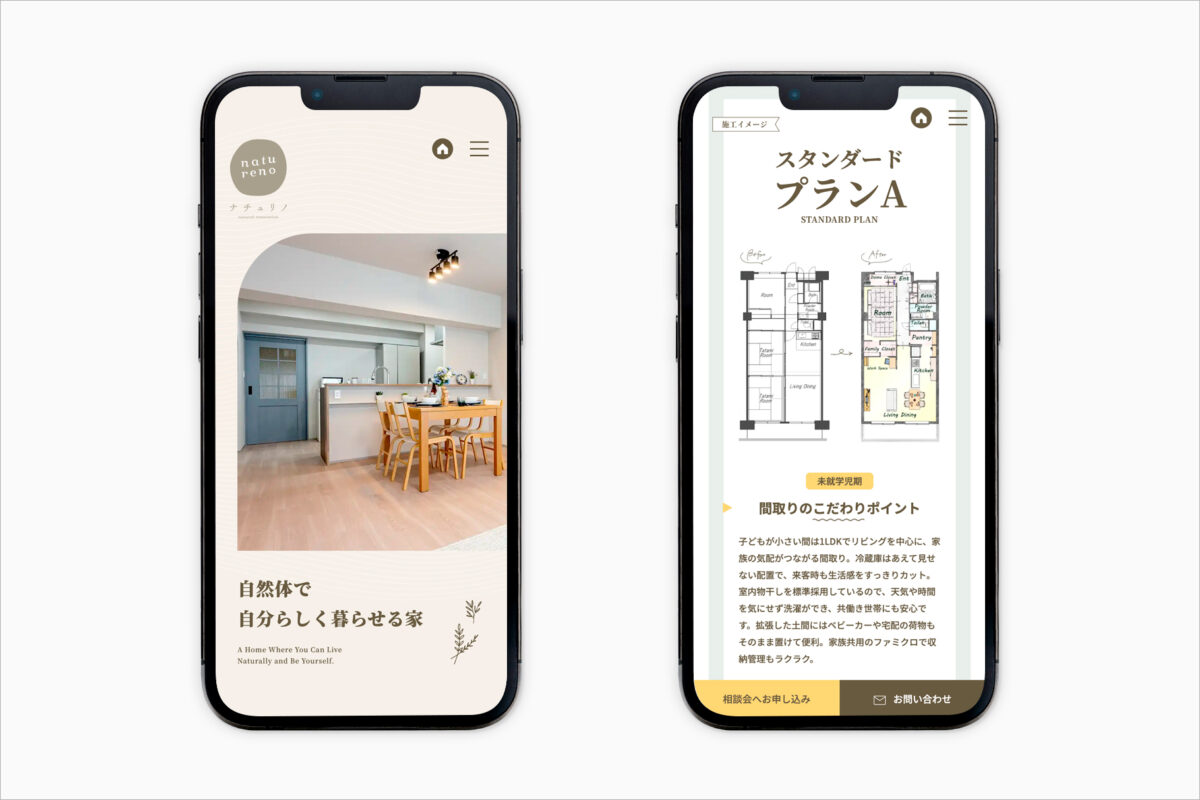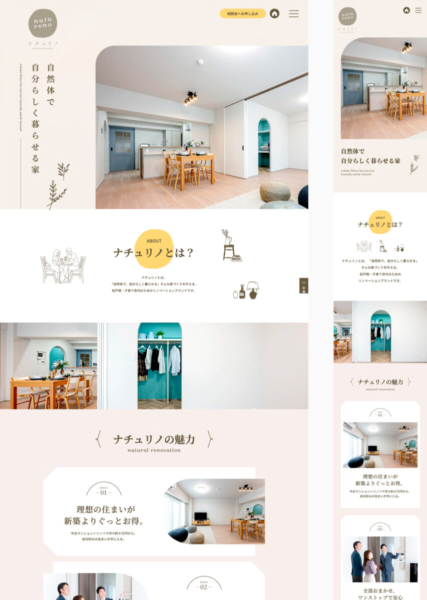 中古マンションリノベーションブランド「ナチュリノ」のホームページ制作を担当しました。